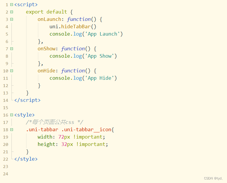 3、在App.vue下面使用uni.hideTabBar把官方提示的样式给去除掉