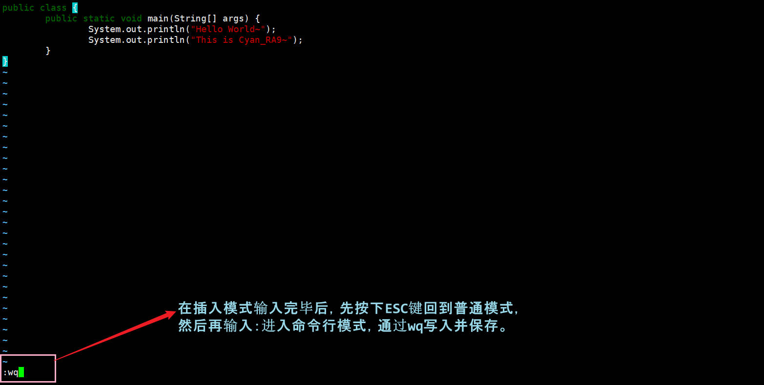 (3) 如何退出:在插入模式中按 Esc 键即可返回普通模式。