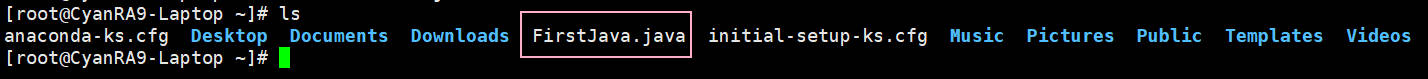 保存退出后,这时候我们就会发现我们的root目录里面已经多了一个 FirstJava.java 文件,如下图所示: