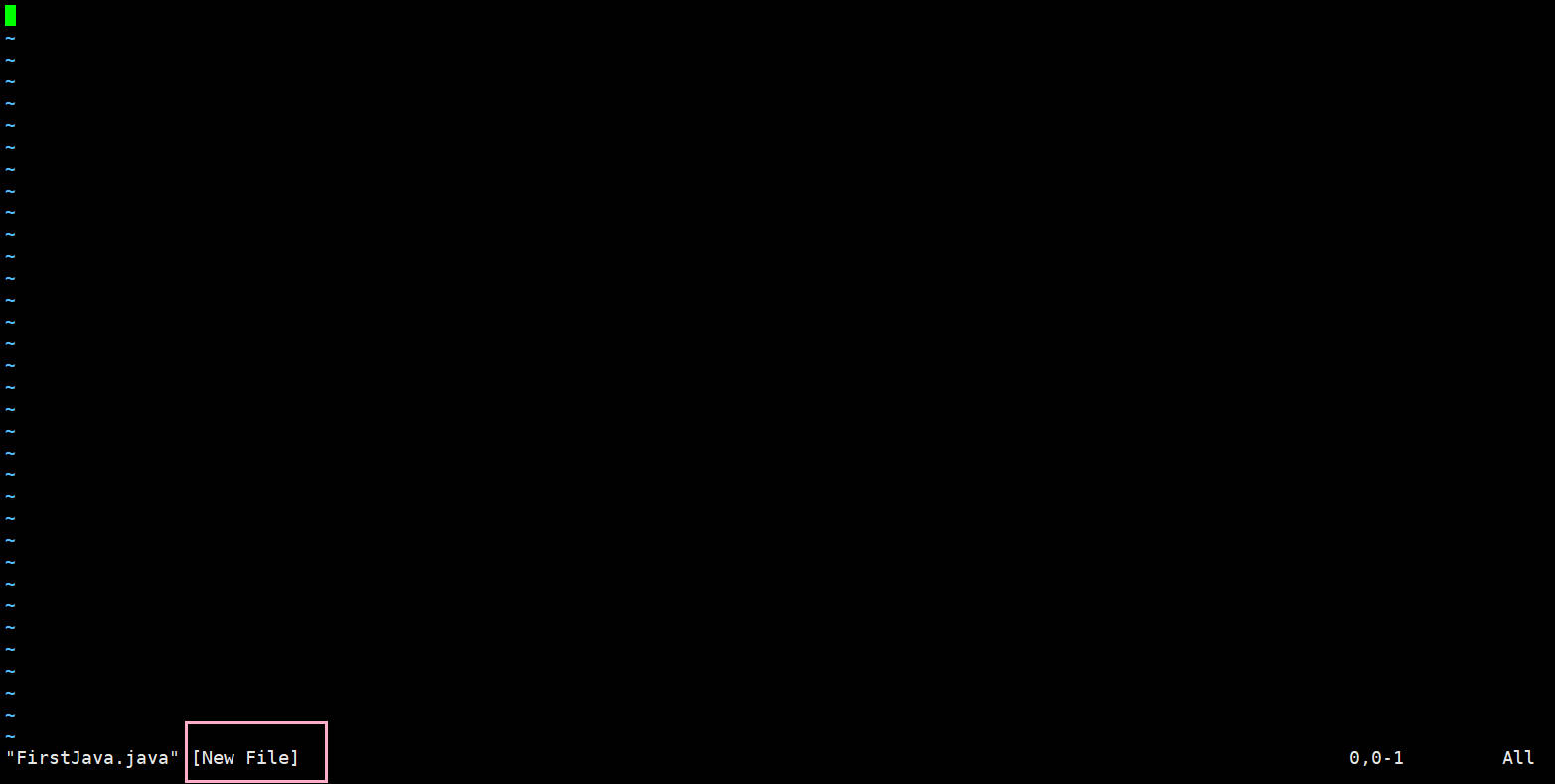 这里up直接通过Xshell登录,然后通过 “vim FirstJava.java” 创建一个演示文件,如下图所示: