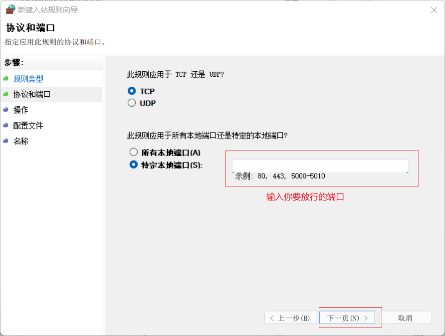6.输入需要放行的端口。