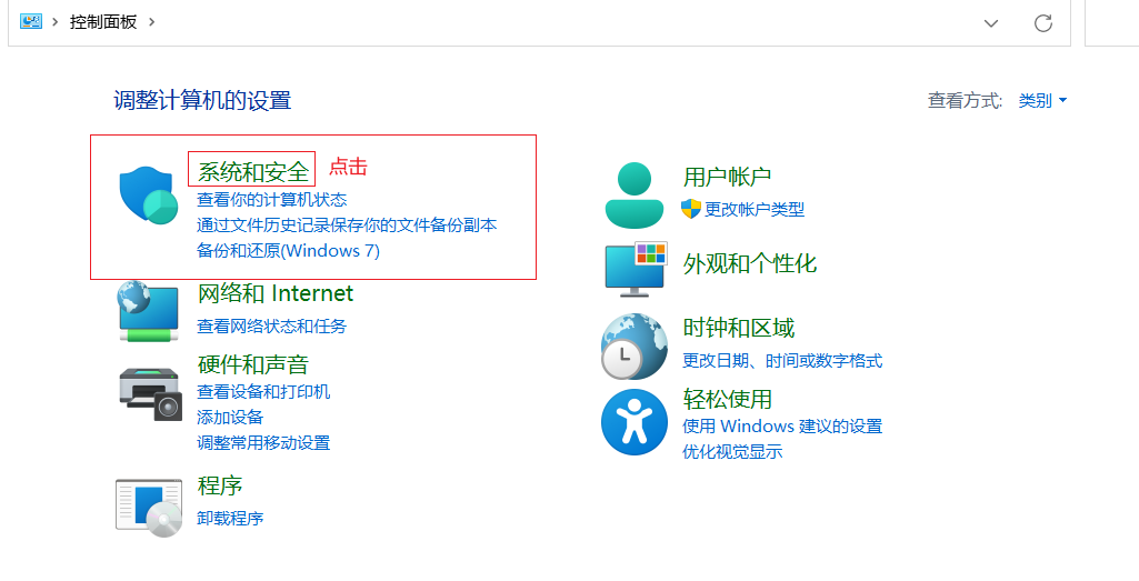2.点击系统和安全。