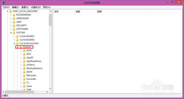 继续打开CurrentControlSet文件下列出的“Control”文件;