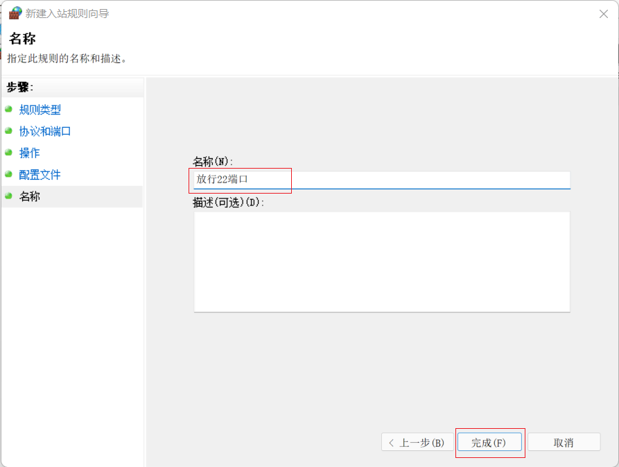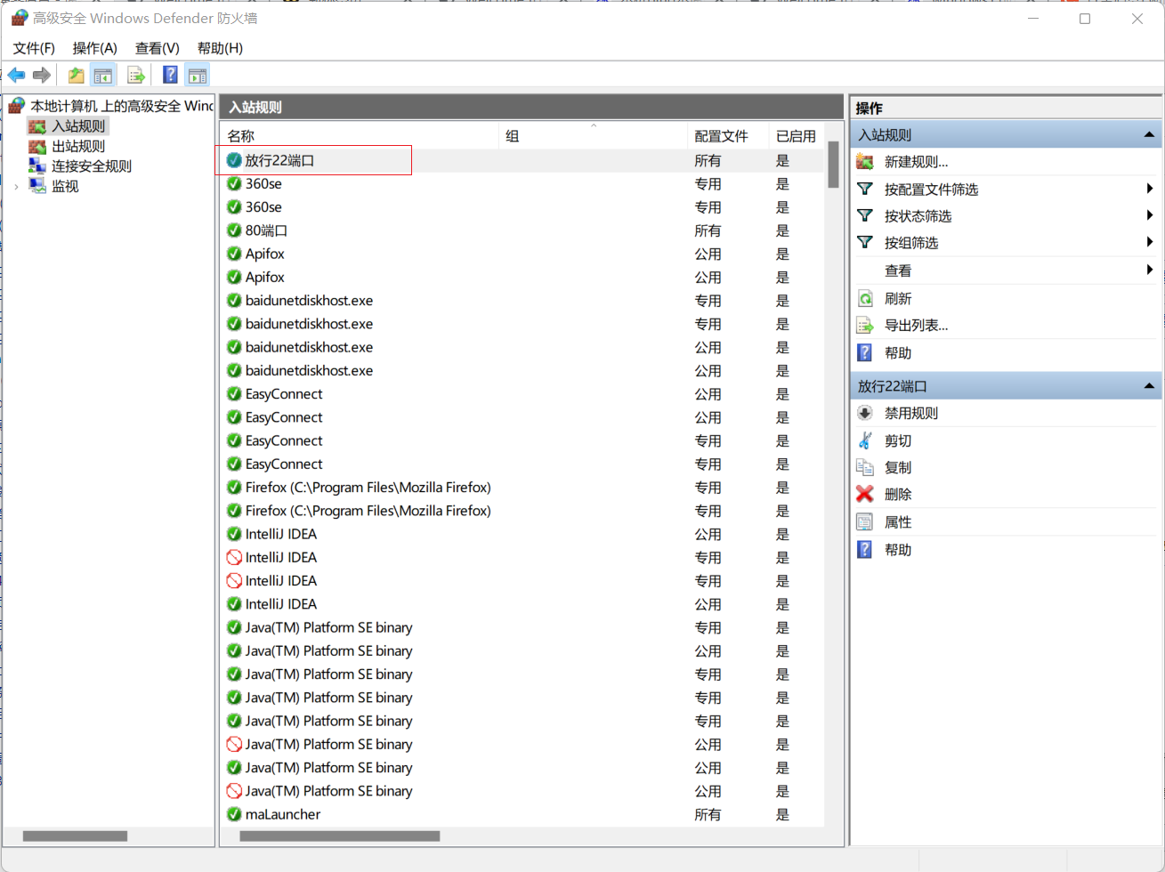 修改完端口后,需要在防火墙内对端口进行放行,放行步骤如下