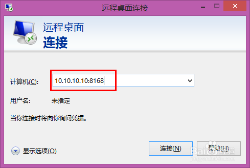 重启完成计算机后,再次进行远程连接时需要在IP地址后面添加 :8168端口号才可以正常连接!