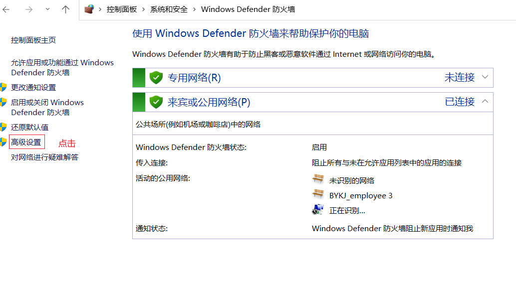 3.点击Windows Defender防火墙。