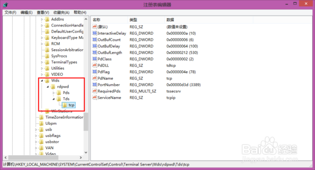 继续打开Terminalserver下列出的wds文件下的“tcp”文件;
