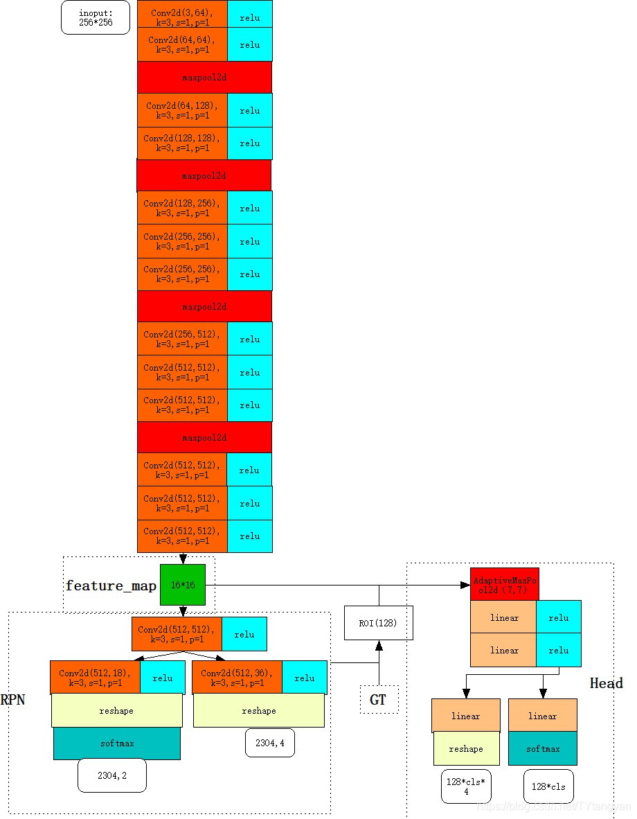 下图为使用VGG16作为 backbone的faste-r-rcnn的网络结构图。