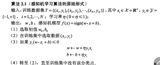 w为权值向量,b为偏置(bias) sign()为符号函数,即x大于等于0,sign(x)=1,反之=-1