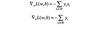 先任意的选取超平面w0,b0,然后使用梯度下降法不断极小化目标函数 L(w,b)=-求和(y(w*x+b))