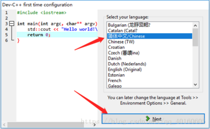 安装完毕,第一次运行Dev-C++会出现这个界面