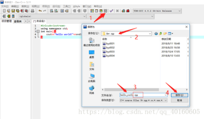 按照上面这一幅图的步骤,先重新编译文件,由于这是一个空的源文件,它会提示你先保存成一个.cpp源文件,所以自己找一个自己知道的位置,写好这个文件的命名即可,记住,文件名后面的后缀是.cpp,这样软件才能编译这个文件