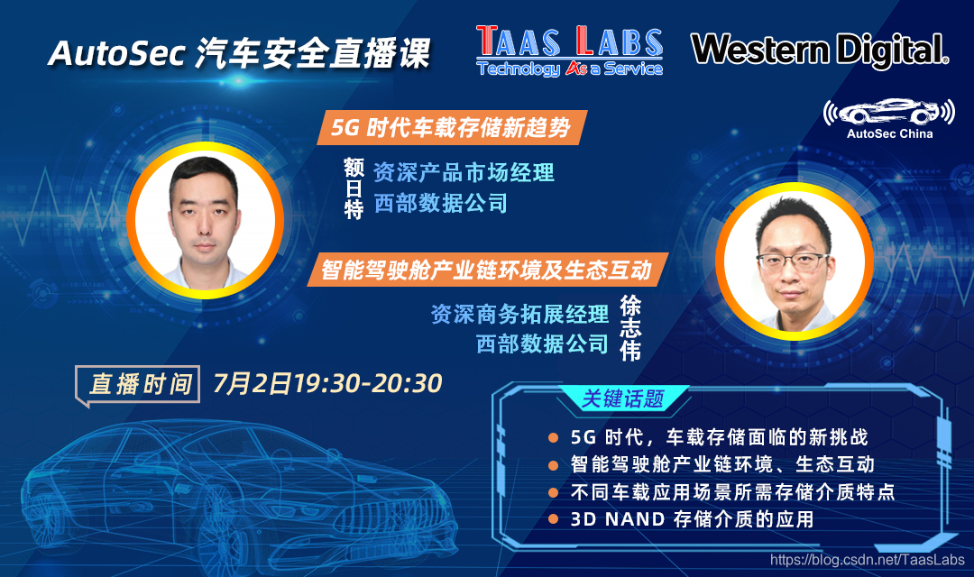 上周谈思实验室AutoSec汽车安全直播课特邀西部数据公司资深产品市场经理额日特先生及资深商务拓展经理徐志伟先生为大家带来5G 时代车载存储新趋势及智能驾驶舱产业链环境及生态互动主题分享。