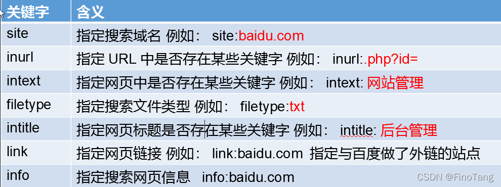 针对某些安全做的很好的目标,直接通过技术层面是无法完成渗透测试。在这种情况下,可以利用搜索引擎搜索目标暴露在互联网上的关联信息。例如:数据库文件、SQL注入、服务器配置信息、甚至是通过Git找到站点泄露源代码、以及Redis等未授权访问、robots.txt等敏感信息。从而达到渗透测试的目的。