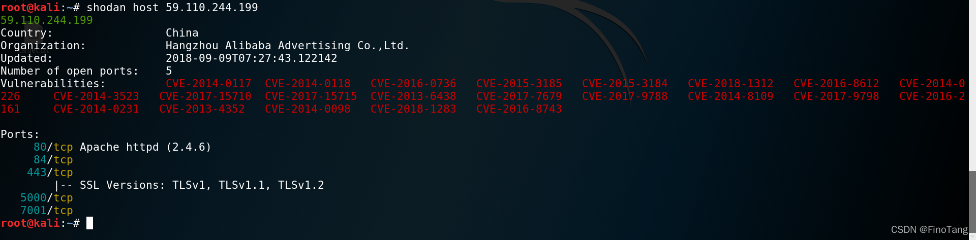 针对指定IP进行查询。可以在https://developer.shodan.io/api查询参数