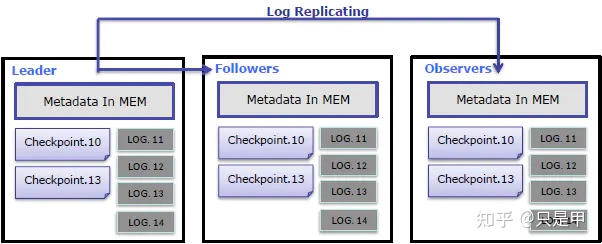 - 元数据使用 Memory+Checkpoint+Journal ( 分别是什么?),使用 BTBJE ( 类似于 Raft ) 协议实现高可用性和高可靠性。