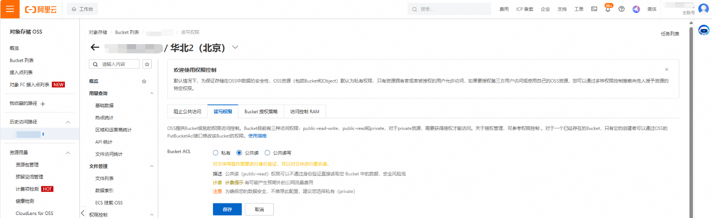 需要注意,选购后需要开启公有读,不然图床是无法公开使用的。