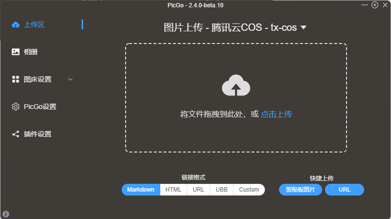 PicGo 是一款开源图床客户端,支持多种图床,支持拖拽、剪贴板上传,并能自动生成 Markdown 链接。