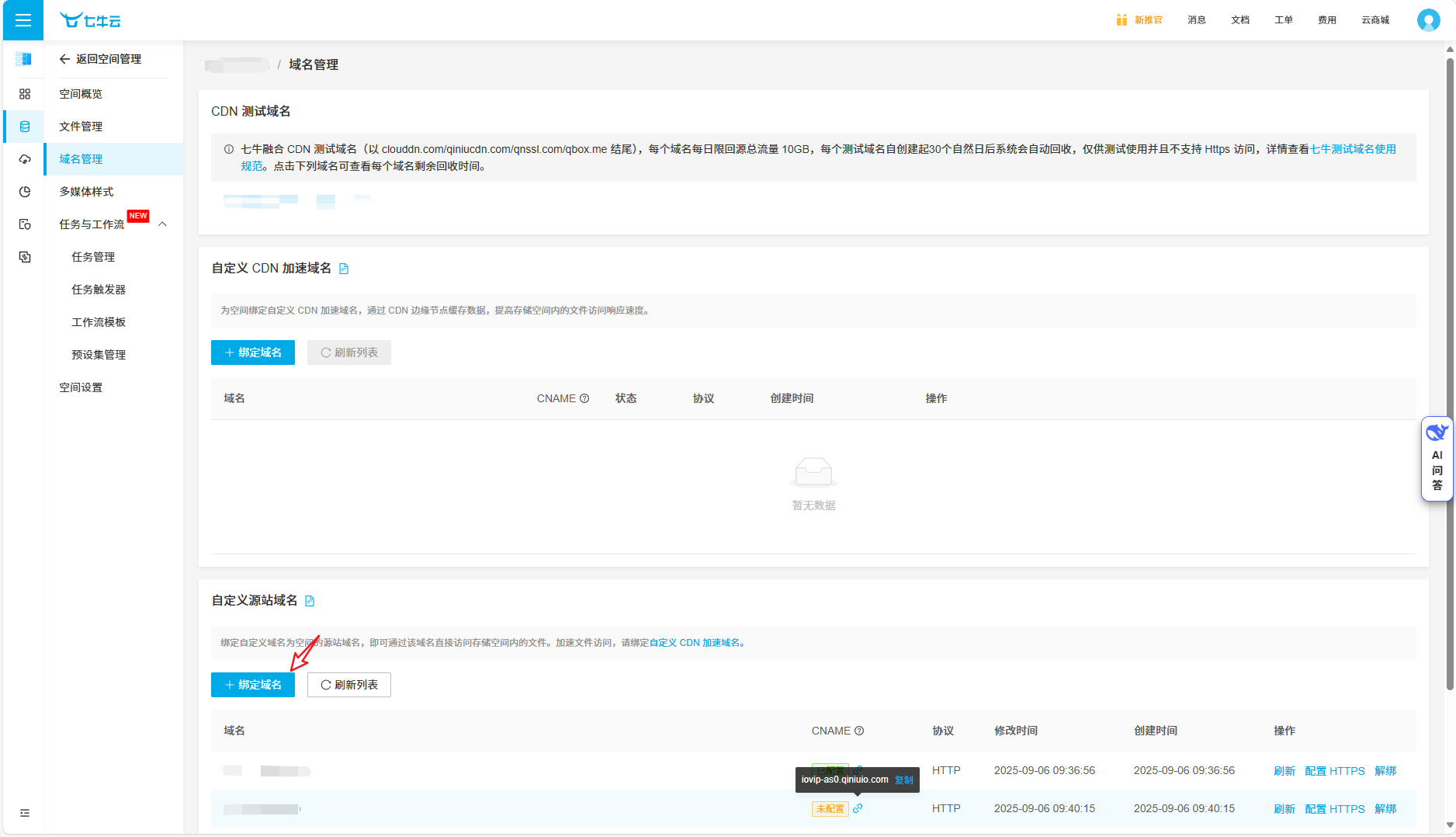 配置完成后,在七牛云刷新域名即可(有一定时延)。