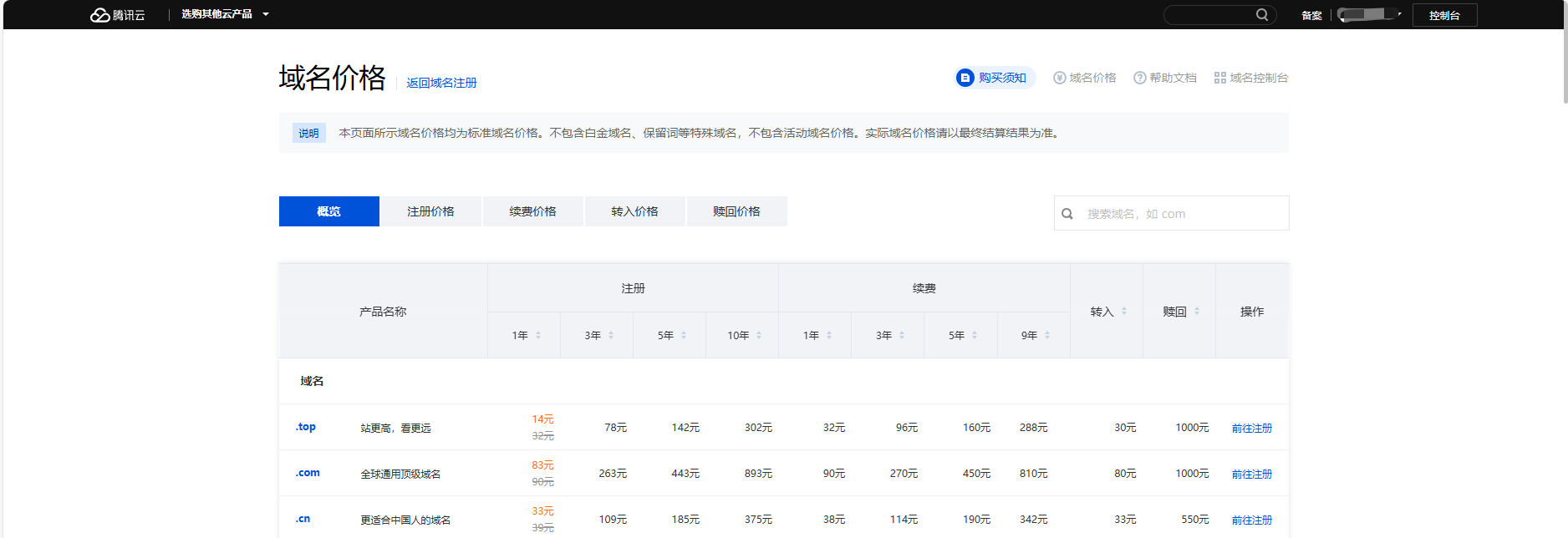 不过七牛云不配备固定域名,仅提供测试临时有效的测试域名,因而需要自行添加域名,也就是还是存在域名费用开销的(上图是腾讯云的 域名价格表 ,其他云厂商应该类似)。