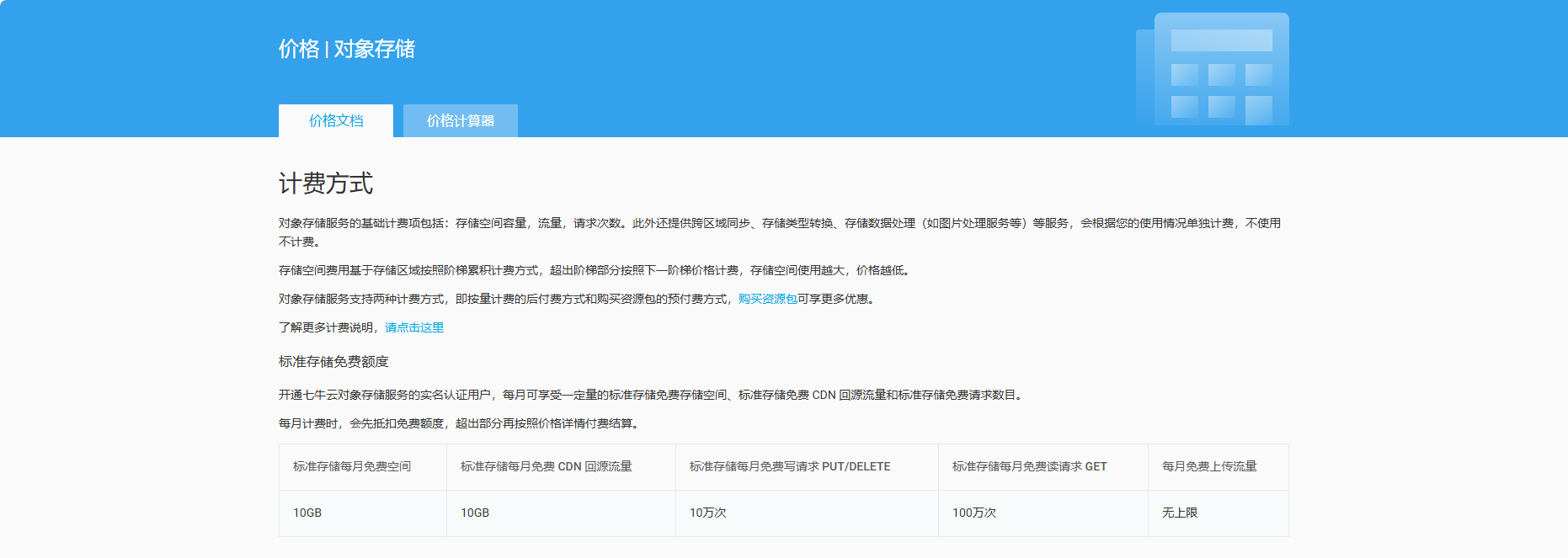 七牛云也有不少uu推荐过,最大优势莫过于国产稳定、免费额度高,每月是有 免费存储额度 的。
