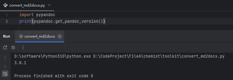 如果输出了pandoc的版本号,恭喜你!问题已经解决,现在可以愉快地使用pypandoc进行文档转换了。