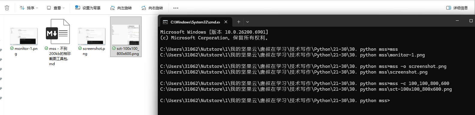选定区域,然后获取区域截图,调用 mss 自带的工具进行文件保持即可