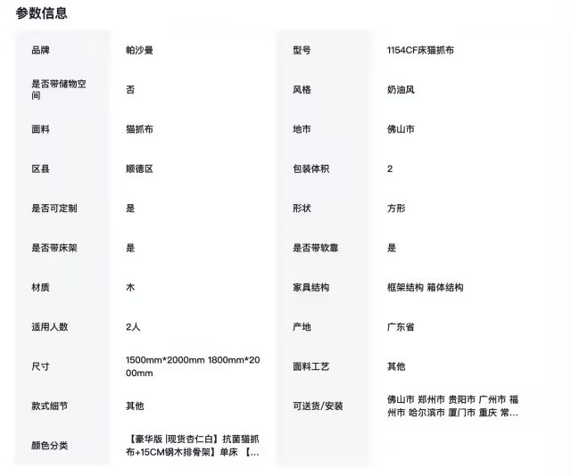 文本数据,但是很多家装商品并不会在SKU文本中直接标明其精准尺寸,而是类似这样只是指明款式信息,真正的精准尺寸仍需从图片中获得。 |