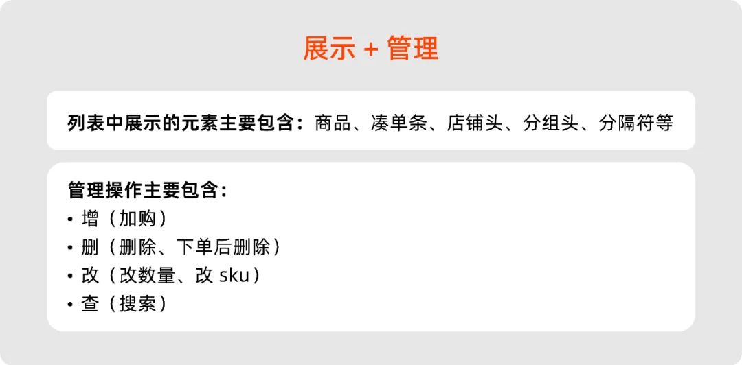 购物车作为用户准备购买的商品集合,承担着展示+管理的功能。