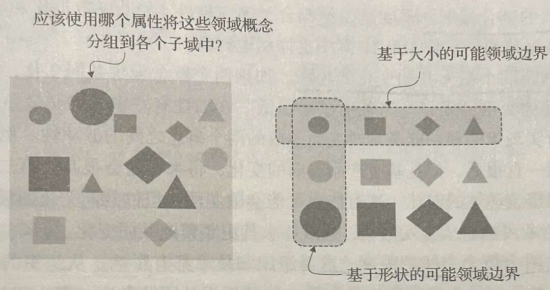 这对于我们的困难在于,我们应该选择哪些维度来作为我们分类的依据。或者说,我们需要寻找架构的关键要素,这些要素能够将边界切分得恰到好处,冲突不多。这里我们可能得进一步去分析每个待分类目标的产生原因,内部定义,和对外表现等更细的特征。