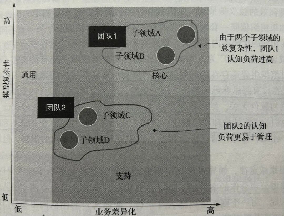 于是,我们可以看到,同样按领域划分团队,大家人数和领域个数差不多,但是有些域的压力就很大,有些域就能够游刃有余。这背后还是“认知负荷”的结构。