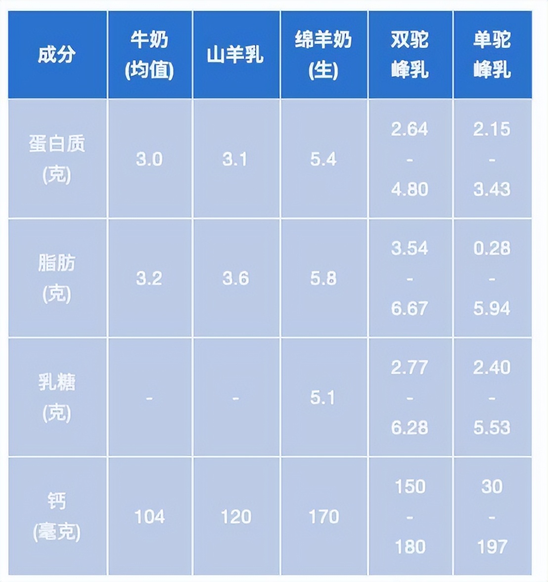 · 驼乳营养较其他乳类更高,但没有达到显著性的差异。