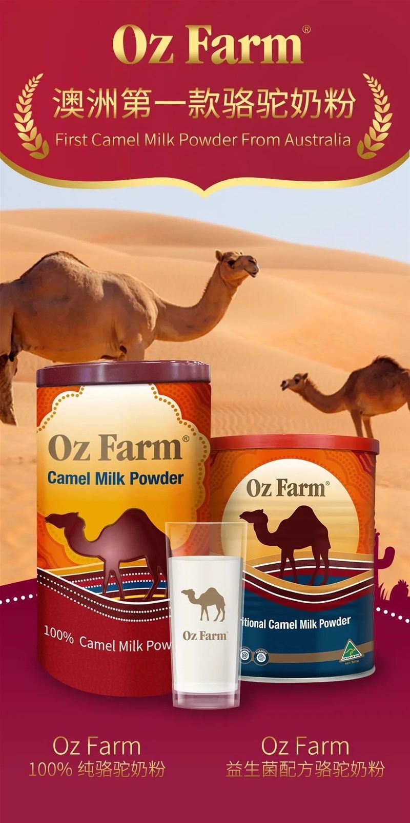 一个新兴产业的诞生,总会引来行业巨头的进入,驼奶市场也没有例外。2020年,知名品牌澳优的第一款骆驼奶成人奶粉在上海进博会亮相,包括Oz Farm 100%纯骆驼奶粉和Oz Farm益生菌配方骆驼奶粉。骆驼奶奶粉的上市,更加丰富了澳优的产品矩阵,也标志着乳业大鳄进军小众奶粉市场的决心,也是骆驼奶发展前景的有力证明,顺势燃起了骆驼奶粉在中国市场的逐鹿之战。