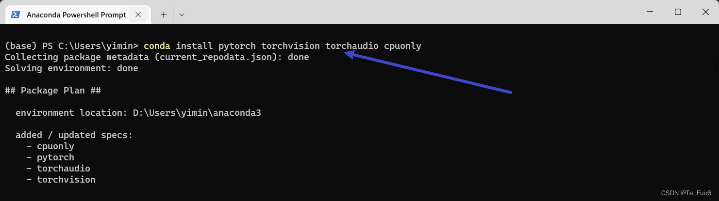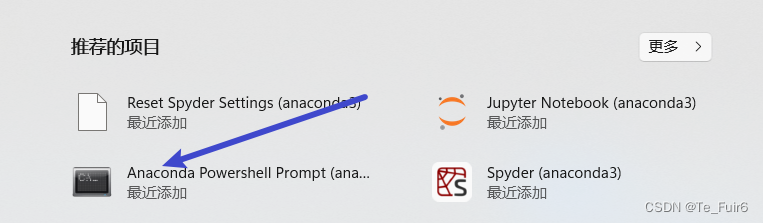 这个指令只是一个对应的安装指令,我们可以把他敲在任何一个我们想安装的python环境中,但是在这里我们是想为anaconda配置pytorch,因此我们要在anaconda中输入这个命令,进入的方式,依次是:进入anaconda power shell prompt 在这当中输入安装命令即可