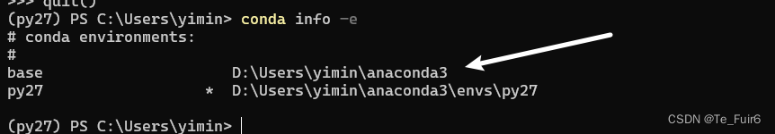 首先我们要在anaconda中使用 conda info -e 查看清楚,我们配置了哪些环境、分别在哪个目录中