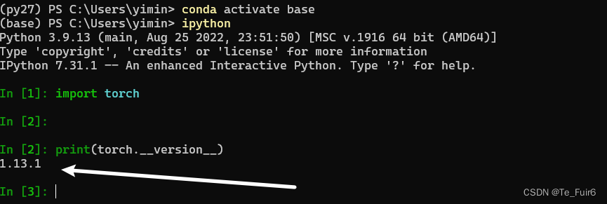 或者更加简单粗暴的方式,关闭这个控制台,重新开一个,打开默认进入到base中