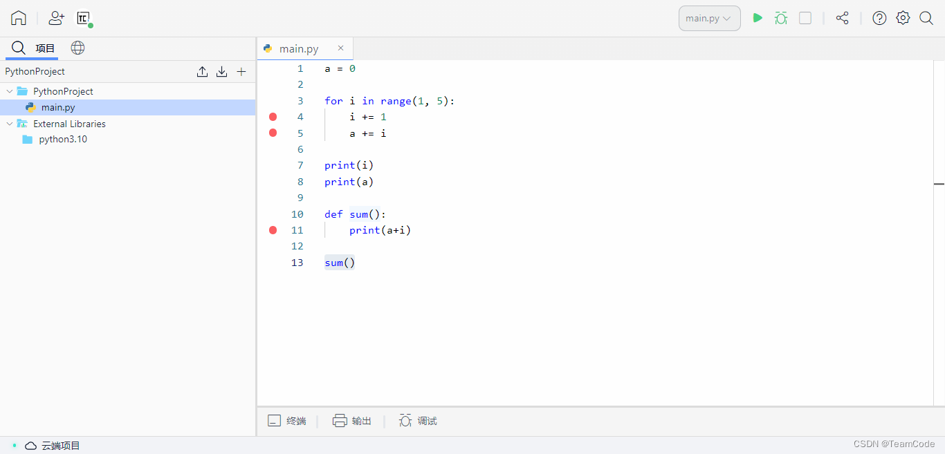 首先,在编辑区左侧为想要调试的代码行打上断点。