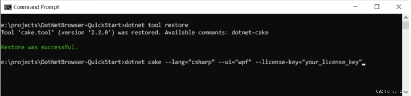 cd DotNetBrowser-QuickStart dotnet tool restore dotnet cake --lang="csharp" --ui="console" --license-key="your_license_key"
