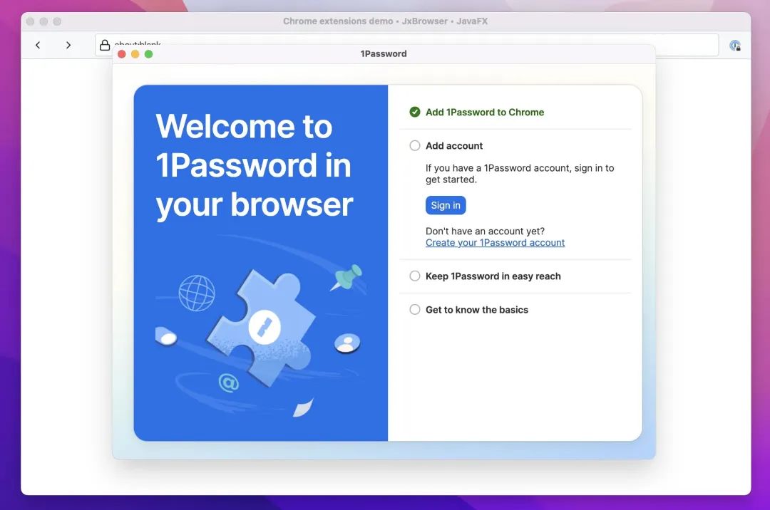 JxBrowser 演示应用中的扩展程序
