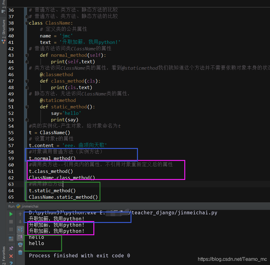 5.静态方法和类方法无法访问对象的属性,所以更改对象的属性仅仅只是对普通方法起作用。