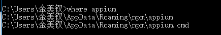 复制第1个步骤找到的appium安装目录:C:\Users\金美钗\AppData\Roaming\npm\
