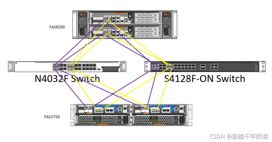 - 新购FAS2750 集群口,分别连上两台交换机,如图所示连接