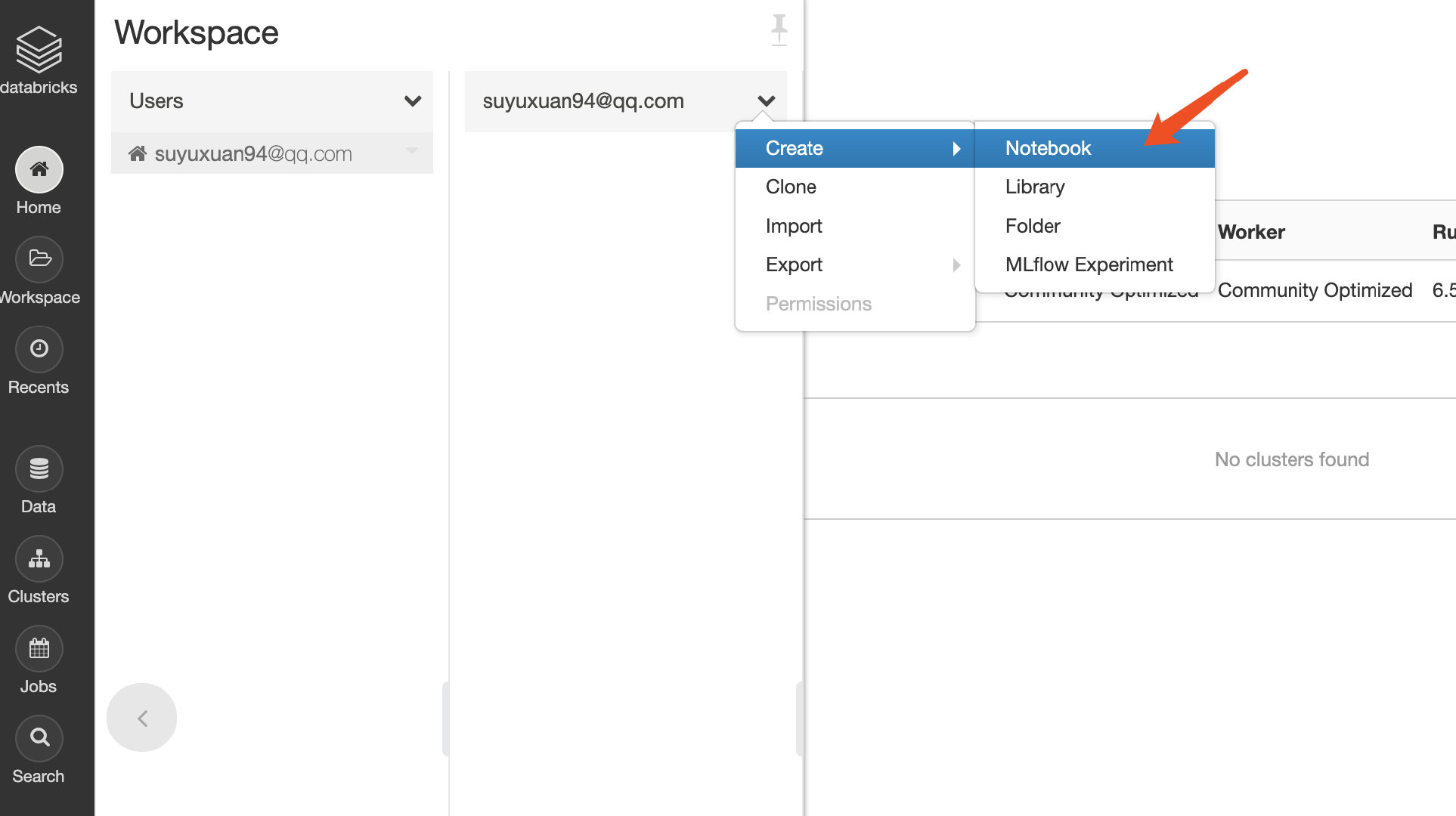 等集群创建好了之后, 我们就可以创建notebook进行愉快地编码了。