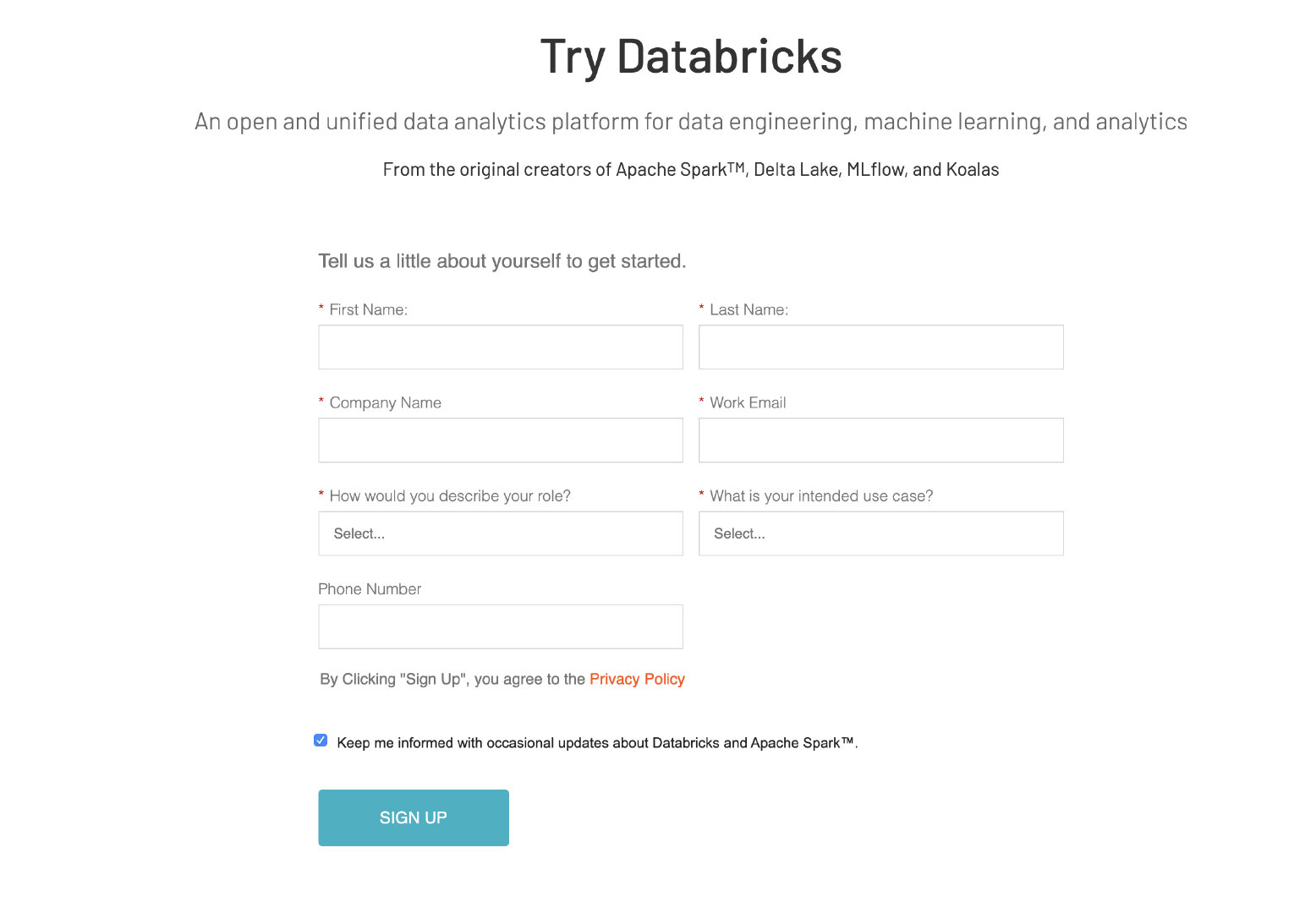 说来惭愧我也是最近才知道这么一个平台(感谢sqd大佬的分享),不然的话也不用在本地配置spark的环境了。下面简单介绍一下databricks的配置过程,我不确定是否需要梯子,目测应该可以正常访问。有知道的小伙伴可以在留言板里评论一下。