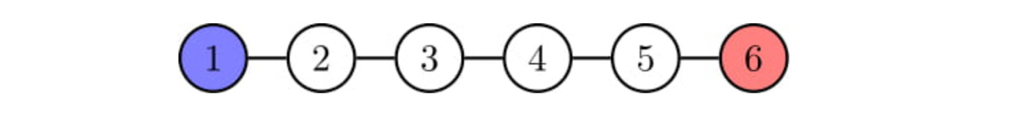 由于Alice最多只能移动两格,第一回合移动到3,Bob选择不动。只要Alice移动,不论是一格还是两格,Bob都可以直接移动到1节点。也就是说最终Bob就在1和6节点之间来回移动,躲开Alice的追捕。
