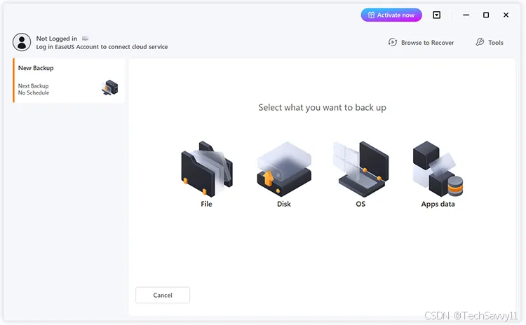 步骤5: 如果你感兴趣,可以通过“选项”按钮进行自定义设置,例如启用每日、每周、每月或按事件自动备份计划,并进行差异和增量备份。点击“立即备份”,Windows系统备份过程将开始。完成的备份任务将以卡片形式显示在左侧。