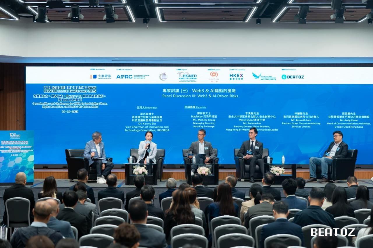 随后进行的圆桌讨论由 HKiNEDA 创新技术副主席 Kenny Siu 博士 担任主持,来自 HashKey 集团、Google Cloud、EY(安永) 等全球企业的专家,就 BEATOZ 提出的 Web3 与 AI 风险治理解决方案展开了深入交流。