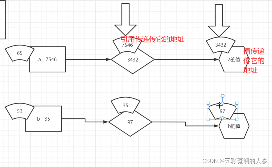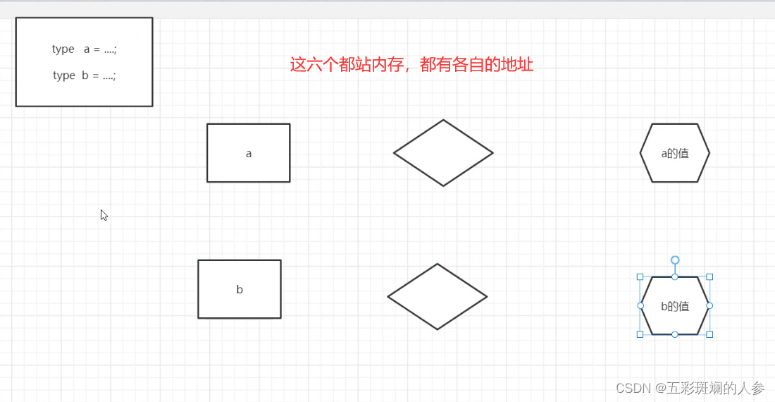 a和b是占空间的,注意这里a的值和b的值不只是基本类型,引用类型也如此,如结构体,产生的实例也是一个值