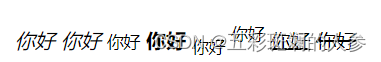 <em>你好</em> <i>你好</i> <small>你好</small> <strong>你好</strong> <sub>你好</sub> <sup>你好</sup> <ins>你好</ins> <del>你好</del>效果如图。