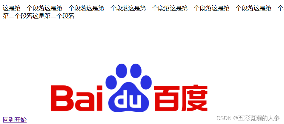<a href="http://www.baidu.com">跳转到百度</a>效果如图所示,点击后在当前页面跳转到百度。